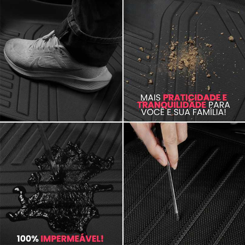Os tapetes são produzidos em Polipropileno premium + TPE moldado em 3D + base antiderrapante, resistente, impermeável e fácil de limpar.